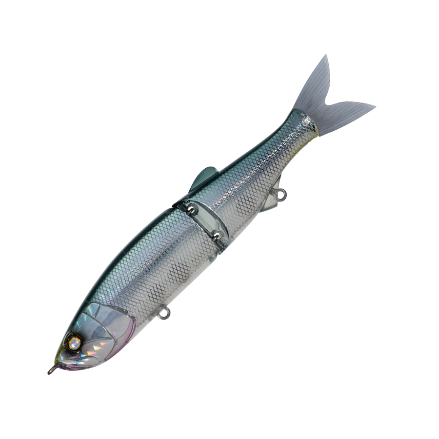 WHIPLASH FACTORY's first jointed lipless minnow. It swims seductively in a wide slalom with a short travel distance during retrieval, and its movement is also transmitted to your hand. With a light twitch, it darts left and right, and with fine continuous operation, it develops a writhing action under the water surface, driving the target crazy. The body thickness is set to 1.5 mm, assuming a strong target with teeth and jaws. The hook is one size larger than the general model of the same type, and the hook-up rate is also improved.